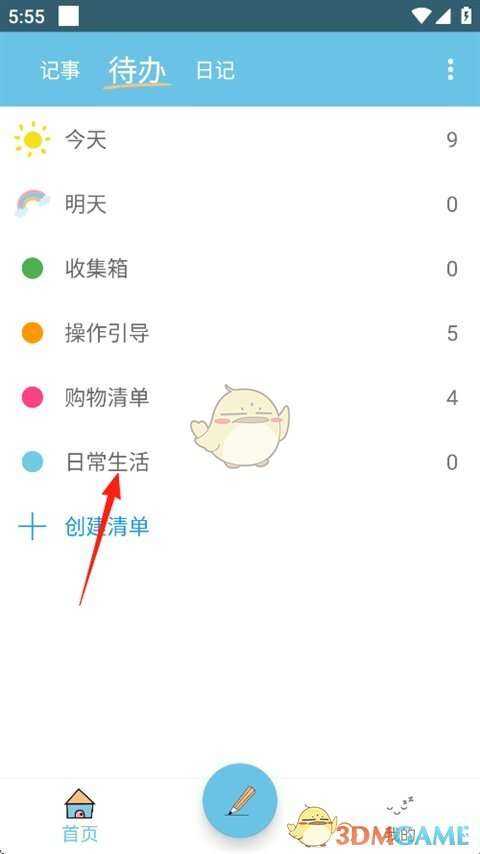 1、点击打开(dakai)秒记记事app后,如图所示,点击“待办”,再点击箭头处。