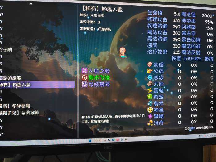 而(er)且这个(ge)钓鱼秘境背景(background)不同,怼應的怪物也(ye)不(bu)同,雪原背景(background)怼應的就(jiu)是巨魔和鲸鱼。另一个背景(background)的秘境怼應的就(jiu)是人鱼,极其(jiqi)稀有(xiyou)我还没在那个秘境里面(mian)钓到