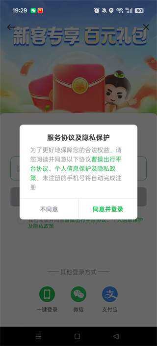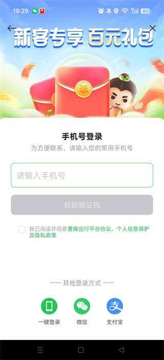 曹操出行app登录方法一览打开软件,在平台协议及隐私政策中选择同意,我们可以直接我已阅读并同意,选择本机号码一键登录,输入手机号,获取验证码就可以了,还能使用微信或者支付宝来登录,接下来就让我们一起了解一下吧。
