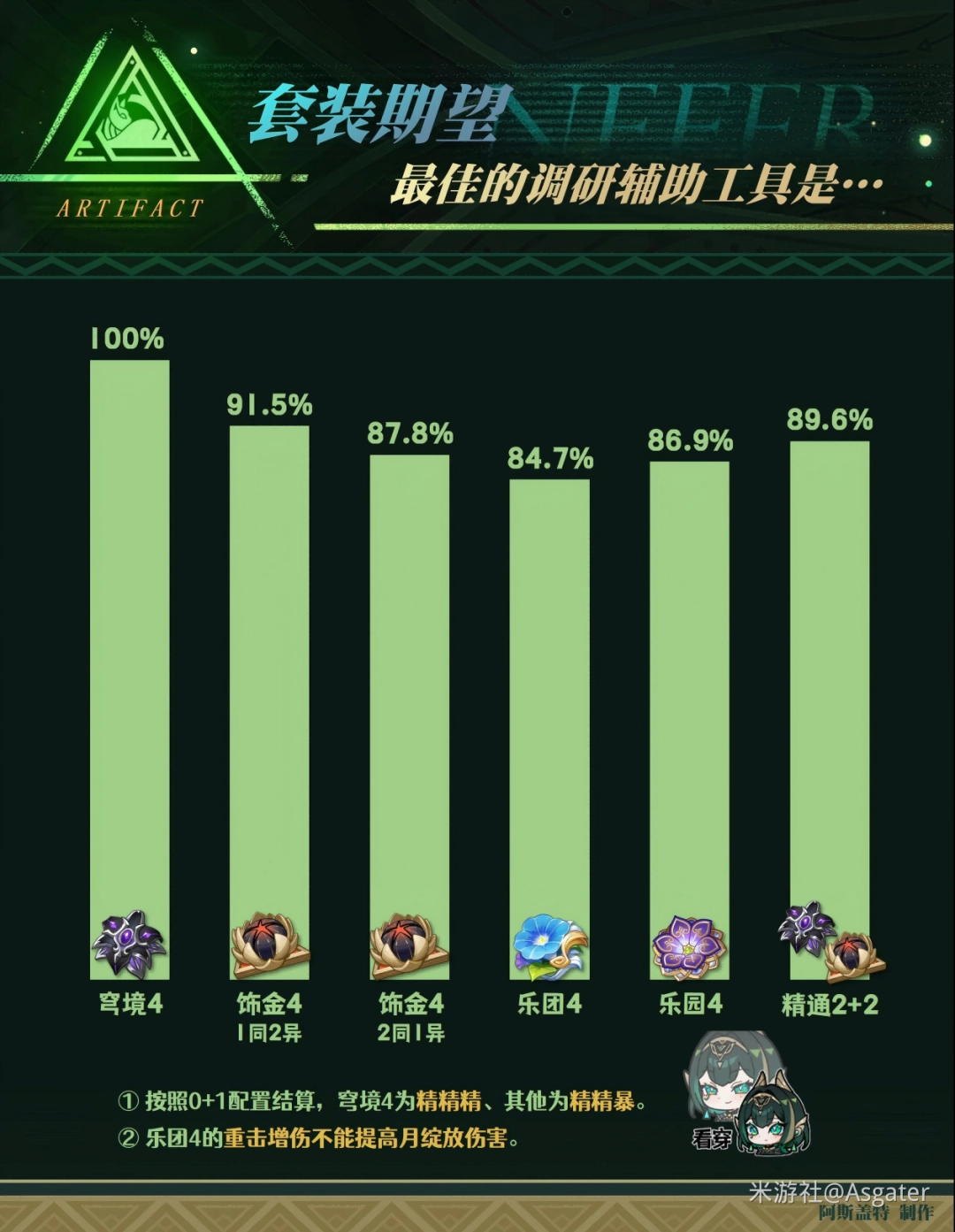 ①【穹境4】是最契合奈芙尔的套装——降(jiang)低圣遗物暴击需求、更易满暴。
