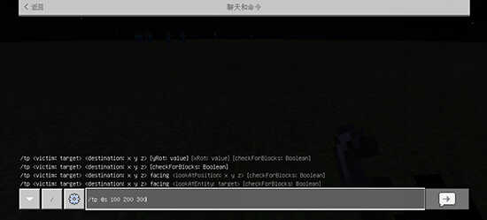 2、在对话框中,输入(enter)传送指令/tp x y z或/tp 玩家(player)名 x y z;