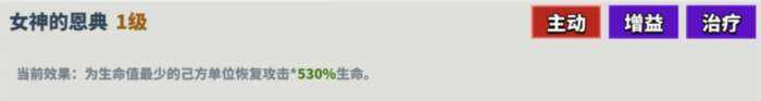 描述:为生命值最少的己方单位恢复攻击*530%生命。