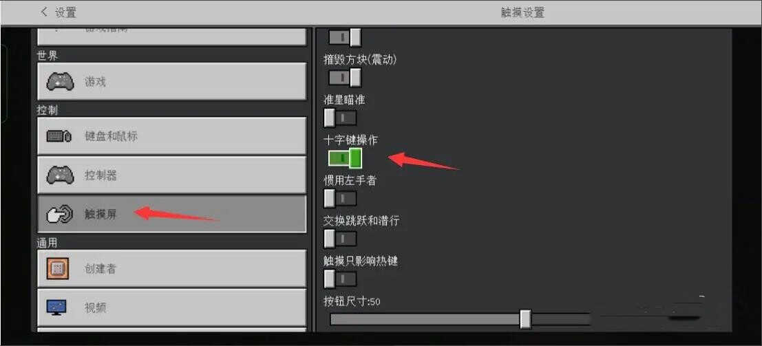 我的世界怎么调整移动按键打开设置;进入设置页面,点击左侧【触摸屏】,将右侧【十字键操作】功能打开;进入画面左下角,下面的内容喜欢可以了解一下。