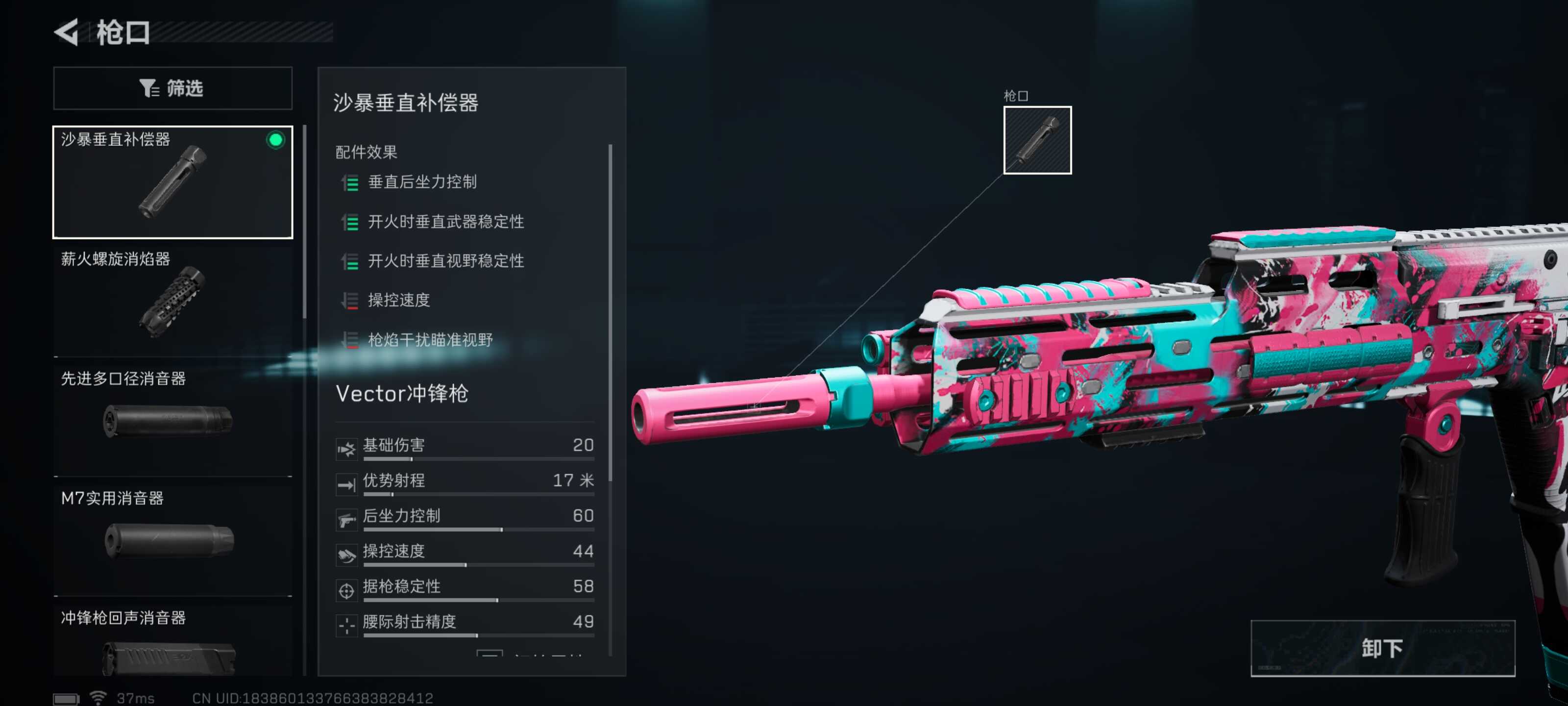 枪管、前握把、枪托全部向右拉满。可以小幅度的提升Vector冲锋枪的稳定性使这把枪更加(more)易上手,下面是靶场测试(ceshi)以及实战测试(ceshi):