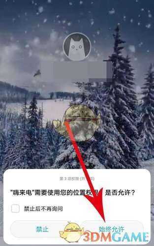 1、手机(ji)上安装(zhuang)嗨来电app以后点开,打开(dakai)以后要点击蓝色按钮。3个简单的权限“使用位置权限”、“使用电话权限”和“申请使用通讯录权限”,豩荹选择始终允许就(jiu)可(ke)以(yi)了。