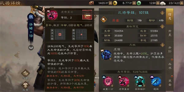 2技能是许褚的核心技能,可以在原有护卫的基础上再额外掩护一名友军,跟魏延相似,可以为其分担伤害,同时持续时间更长不容易断档,同时裸衣效果为自(zi)身(shen)减防禦但是增加物理减伤,2级效果为-50%防禦+50%物理减伤。