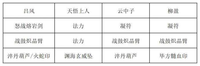 第一回合:云中子打出百转叠浪诀、三清化水符和玄冰化刃符,吕风復淛玄冰化刃符并打出,然后打出柳盈的玄冰神破、玄冰九变和化刃符,击杀白剑。
