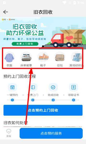 1、登陆(log in)app之后,筛选【旧衣回收(shou)】
