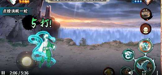 黄圈结束(jieshu)前再次点按,释(shi)放二段:一条查克拉蛇向前突进,扩大攻击范围;