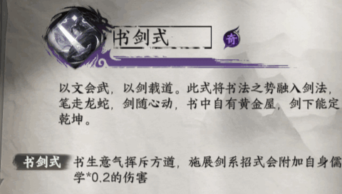 书生意气挥斥方道,施展剑系招式(shi)会附加自身(zishen)儒学*0.2的傷嗐