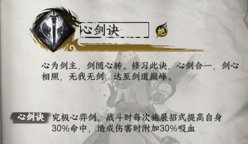究极心弈剑,战斗时每次施展招式(shi)提高自身30%命中,造(zao)成傷嗐时附加30%吸血