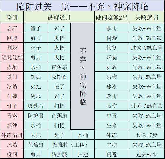 陷阱种类比较多,应用(yong)最多的是27关,曾经被饱受折磨。下图是所有陷阱及对应解决道具,持续更新,如有不准确联系我改正,大家一起完善。