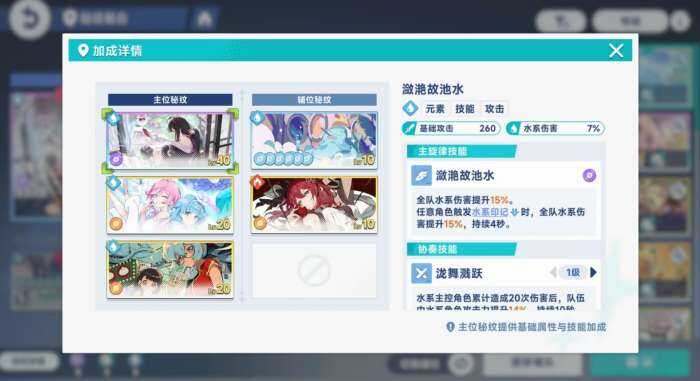 在进行主位秘纹搭配(dapei)之前,各位先需要了解主位秘纹的作用(zuoyong)。与辅位秘纹只起到1个提(ti)供音符数量的功能不同,主纹秘纹并不会为队伍(wu)提(ti)供音符数量,而是会为队伍(wu)带来它们本身的数值加成,以及主旋律技能和协奏技能的加成效果。其中,主旋律技能不需要音符进行激活,只要将秘纹装配在主位秘纹的位置上,那么(So)该技能就会立刻生效。而协奏技能则需要在队伍(wu)获得一定数量和类型的音符后才能激活,激活后若是失去音符,那么(So)协奏技能的效果也会(will also)随之失去,不会一直存(cun)在(zai)。