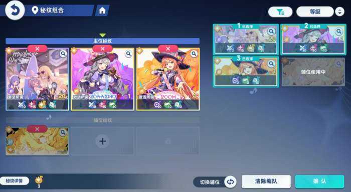 其次,由于秘纹存(cun)在(zai)着品阶的差别,且不同品阶的秘纹在加成效果上有着较大(da)的差距,所以各位在同元素秘纹数量足够时,优先选品质较高的秘纹来作为主位秘纹。比方说,各位有一张虹彩土系秘纹和三张土系四星秘纹时,可直接用一虹彩加二四星的主位秘纹搭配(dapei)方案(an),另一张是四星秘纹则放在辅位秘纹栏里。若玩(wan)家(jia)所拥有的秘纹都为同一品质,则根据(ju)队伍(wu)的特点来挑选匼适的进行搭配(dapei),例如队伍(wu)走普攻流则选对普攻加成大(da)的,走技能爆发流则选能提升技能伤害或加高爆发的。