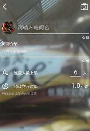 2、然后你就要输(shu)入(ru)你需要连麦的房间名(ming)称、简介内容(rong),并且在人数上设置*多(duo)人(ren)数上限以及预计学习时长,这些通通设置好后就(jiu)可(ke)以(yi)点(dian)击下方的蓝色按钮“創建房间”。