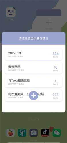 toxx设置插件方式找到Toxx相关插件后选择倒计时插件(含点(dian)击种样式),点击加号添加事件并长按调整插件大小,完成后即可在桌面实时查看倒计时?。该功能支持自定义样式与事件置顶,更多介绍看看下面。