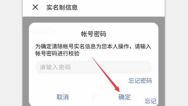 6.输入(shuru)密码后点击(ji)確定,删除后即可修(xiu)改(gai)实名认证。