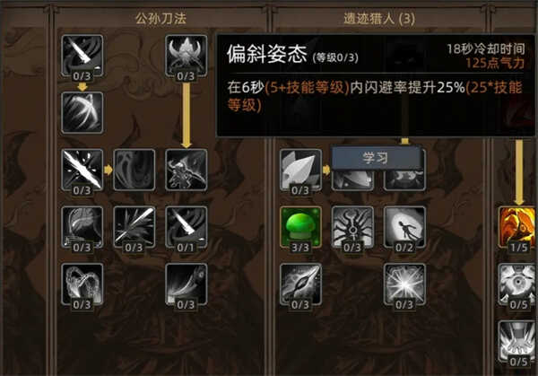 3、学公孙巴兰的偏斜姿势,冷却16秒持续9秒满级加75%闪避。