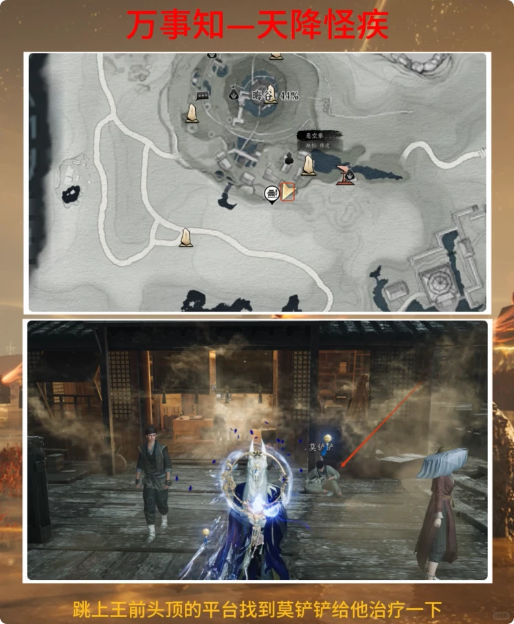 跳上王前头顶的平台找到(turn up)莫铲铲给他治疗一(yi)下