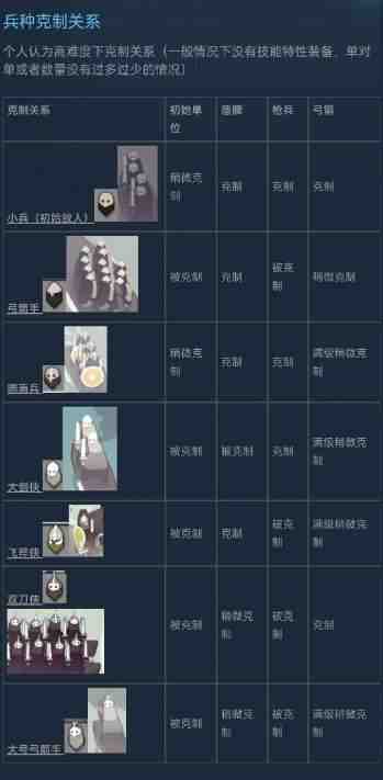 推荐的基础兵种配置是两盾兵一矛兵一弓兵(也可将弓兵换为盾或矛兵),前期优先点出矛兵技能,在狭窄通道能有效克制大部分敌人,其次是盾兵技能,最後考虑弓兵(或再一(yi)个(ge)矛兵)。