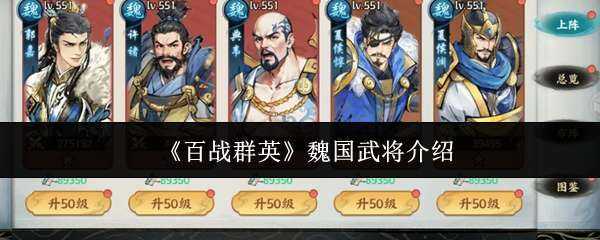 此次小编给大家分享的百战群英魏国武将说明全部内容,有不清楚的或是想了解百战群英魏国武将说明更多情况的小伙伴,请关注小编以获取第一手更新内容。