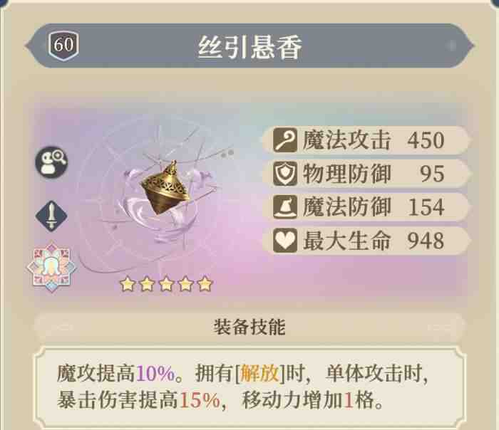 魔攻提升虽不多,但暴击伤害(hai)和移动力加成(jiacheng)是比较稀缺的屬悻。尤其在凹分场合,输出不足尚可通(tong)过(guo)面板弥补,移动力不足则可能需调整整个打法(style of play)。