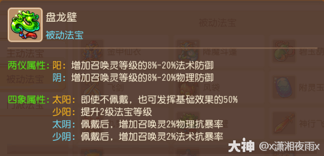 法宝效果:增加佩戴者召唤灵的物理和法术防御