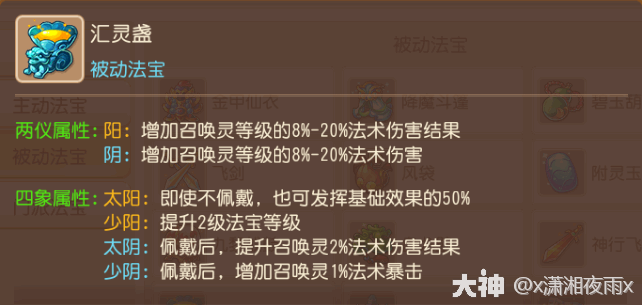 法宝效果:增加佩戴者召唤灵的法术伤害