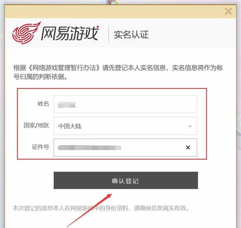 进行(jinxing)实名验证,输入姓名和身份证号,点击【确认登记】。