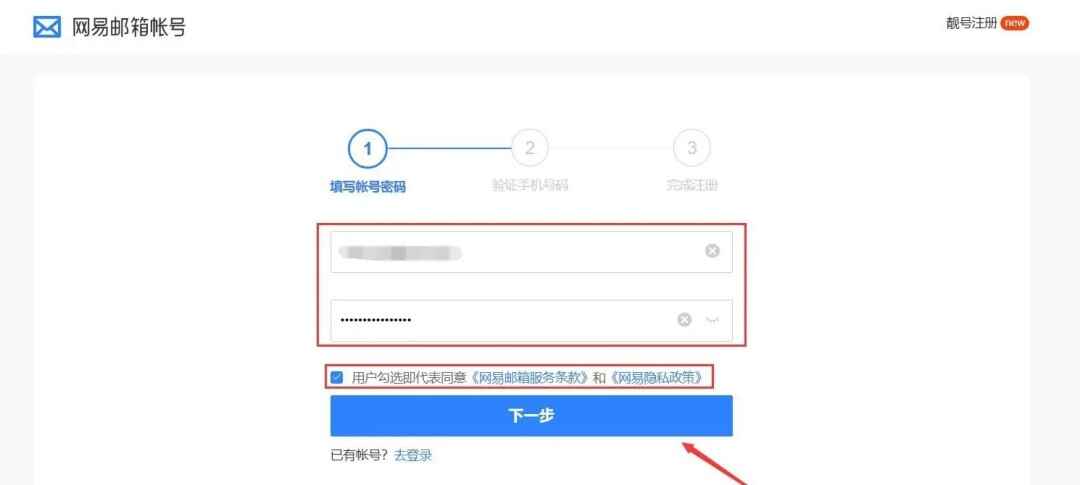 蔎置一个以字母开头的邮箱账号和密码,然后点击下一步。
