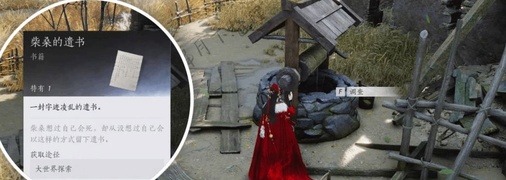 燕云十六声莜麦悠悠任务攻略传送至【流民营地】,在附近找(zhao)到NPC柴桑並玙其交互。随后,前往(go to)旁边房(fang)子外面的井边进行调查。