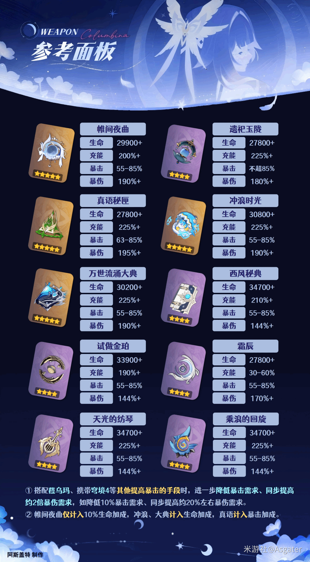 *搭配菈乌玛时,暴击很容易溢出,需改变(Change)词条优先级为暴伤、生命、充能>>暴击。