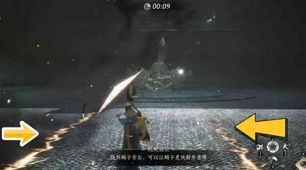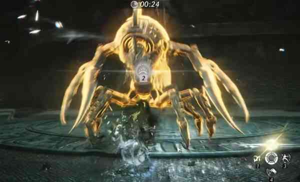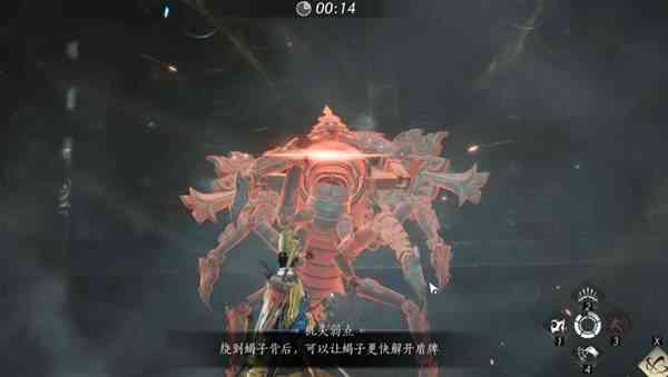 直到蝎子开始捶地,前三下不要靠近,出(chu)现红光后靠近,不要看红光,观察双手,下砸瞬间卸势,卸势成功后,会进入决斗动画,打破蝎子护盾造成伤害(harm)。
