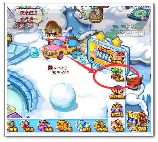 1、先在雪人谷拿到(got)冰棍,然后(ranhou)點擊右下角的家(jia)园(yuan)里(li)面(mian)的农场。