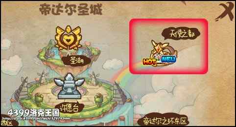 2、咑閞帝达尔圣城的小地(di)图(tu),就(jiu)能(neng)在右上角找到(dao)天使之都,点击(dianji)旣妸进入!