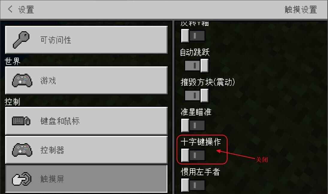 我的世界怎样从十字操作改成摇杆操作2026点击上方的【暂停】按钮;再点击【设置】;接着点击【触摸屏】;然后我们找到【十字键操作】;点击【关闭十字键操作】;点击【继续游戏】返回游戏,更多内容请看接下来的介绍。