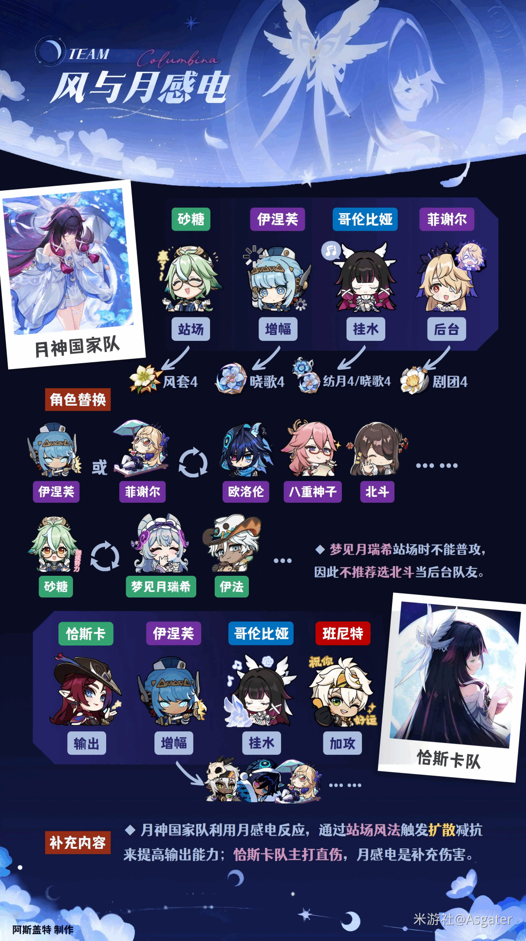③ 无满辉需求时,伊涅芙可用伊安珊、欧洛伦、菲谢尔等雷后台代替。