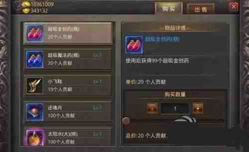 行会商人就在比奇城的飞行点附近,点击右上角地图就可以传送到。点击之后可以看到对应的补给物品(pin),除了红蓝药还有太阳水小飞鞋等需要金券或者元宝才可以(caikeyi)获得的道具,并且购买并不需要任何金币,需要你的个人贡献。只要平时努力做任务的话,想要积攒也是非常容易(easy)的。