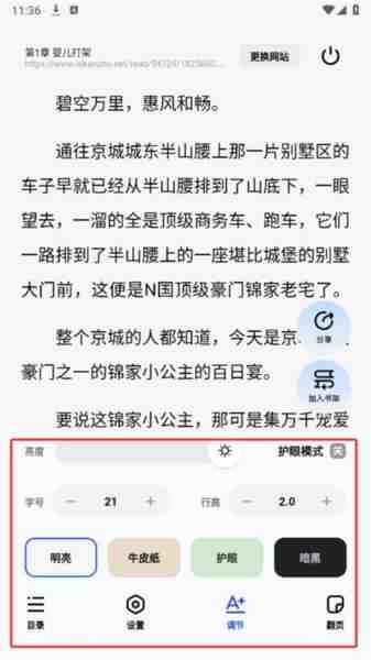 4、进入(jinru)阅读界面后,可以根據阅读習慣调整字体的大小、背景等设置