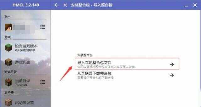 2、点击(dianji)导入本(ben)地整合包文(wen)件,选下载(download)好(hao)的(de)压缩文(wen)件。也可以(can also)直接将压缩包拖入启动(dong)器内。
