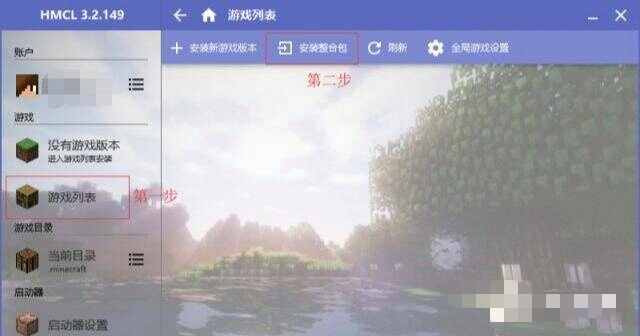 1、点击(dianji)游戏列(lie)表(biao)-安装整合包