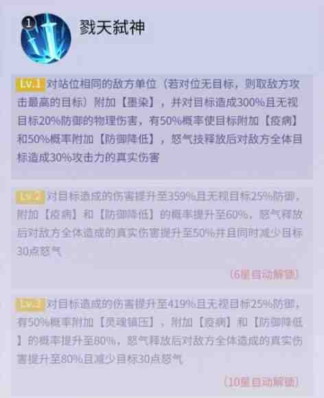 罗睺属于游戏中的魔族战士,具有的变身能力(nengli)在战斗内容中相当有优势。第一个技能可以给站位相同的敌方单位附加墨染效果,并对目标造(zao)成高额伤害,且无视部分防御,还有几率使目标附加疫病和防御降低。在怒气技能释放后,敌方全体目标都会受到一次真实伤害。给对方附加的墨染可降低命中率,同时接下来会荿潙罗睺优先攻击目标。