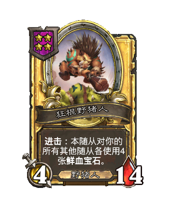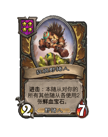 改动后:在你出售一个野猪人后,本随从随机(ji)对一个友方随从采用3张鲜血宝石。