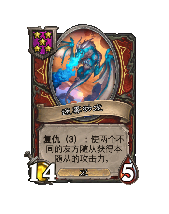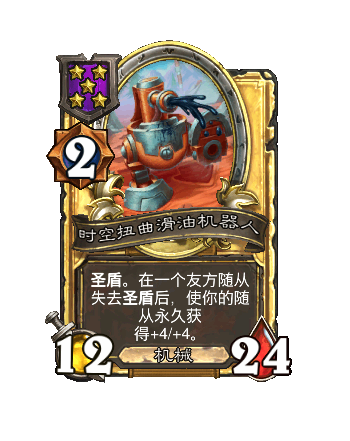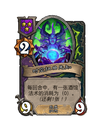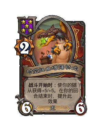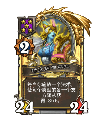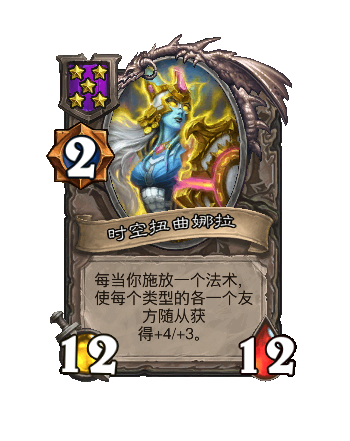 改动前:5/4。每当你施放一个酒馆法术,随机(ji)使三个友方随从获得+2/+2。