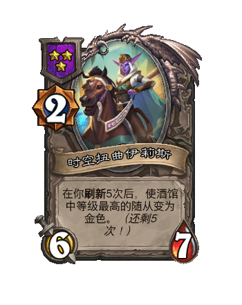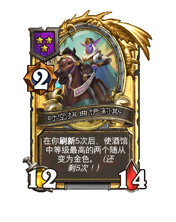 改动后:在你刷新5次后,使酒馆中等级最高的随从变为金色。(还剩5次!)