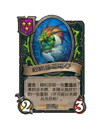 改动前:4/4。进击:随机(ji)获(huo)取(qu)一张塑造法术的法术牌并施放它的一张复制(尽可能以本随从为目标)。