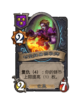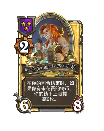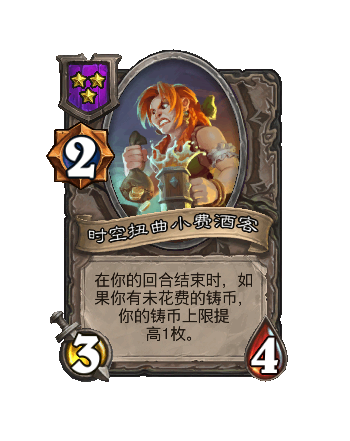 改动前:[1时光标记]在你的回合结束时,如果(guo)你有未花费的铸币,随机(ji)获(huo)取(qu)随从牌和酒馆法术牌各一张。