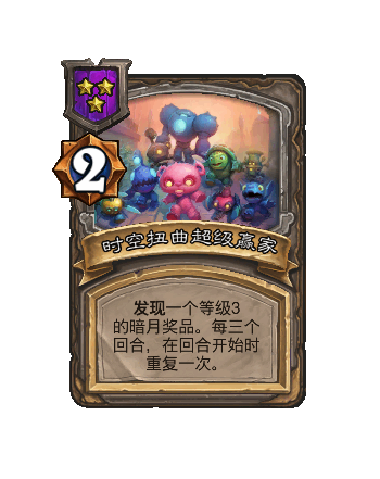 改动后:发现一个等级3的暗月奖品。每三个回合,在回合开始时重复一次(once)。