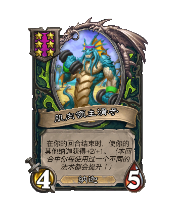 改动前:4/6。在你的回合结束时,使你的其他纳迦获得+1/+1。(本回合中你每采用过一个不同的法术都会提(ti)升(sheng)!)
