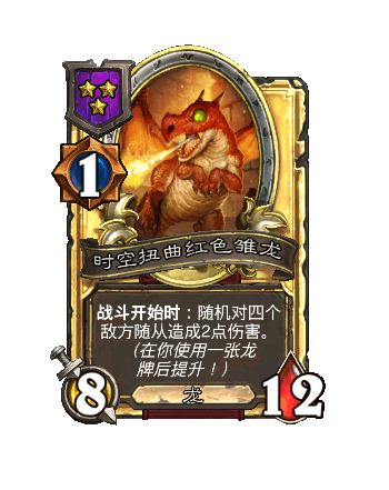 改动后:战斗开始时:随机(ji)对两个敌方随从造成3点伤害。(在你采用一张龙牌后提(ti)升(sheng)!)
